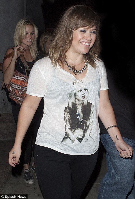 Kelly was clearly in great spirits as she left the famous Los Angeles venue flashing a huge smiling and laughing with her friends as they climbed into a waiting car.