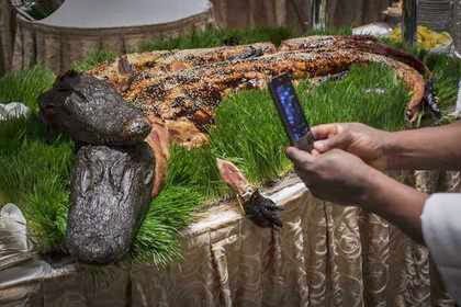 Aligator merupakan reptilia besar yang bentuknya seperti buaya. Pada kebiasaannya ia terdapat di tasik dan sungai. Pengerusi syarikat Amazon, Jeff Bezos turut menghadiri majlis makan malam itu. Dia turut menikmati makanan lipas yang dimasak oleh Rurka dan pasukan memasaknya. Kuih coklat yang dihidangkan bersama larva turut disediakan untuk para tetamu. - Agensi